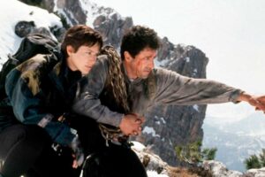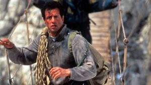 La película la dirigió el finlandés Renny Harlin, quien disfrutaba de un buen momento en Hollywood después del éxito de Pesadilla en la calle del infierno 2: El amor de los sueños y Duro de matar 2 (1990) -que recaudó más dinero en taquilla que la primera entrega de la saga protagonizada por Bruce Willis-. Riesgo total apelaba al impacto emocional para desarrollar una historia de culpa, redención y reconciliación entre dos amigos escaladores, pero bañada de acción en las alturas. Todo comenzaba con una tragedia cuando Gabe (Stallone) asistía en el rescate de su amigo Hal (Michael Rooker) y su novia Sarah (Michelle Joyner), después de quedarse atrapados en la cima de un pico montañoso. Pero durante el proceso, el arnés de Sarah se rompía y aunque Gabe intentaba salvarla, su mano terminaba deslizándose hasta caer al vacío. La escena era impactante. No solo por el dramatismo y la desesperación de todos los personajes, sino también por el realismo visual en las alturas.